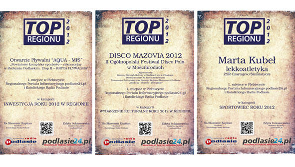 Wsparcie organizacyjne, zorganizowanego po raz pierwszy plebiscytu podsumowującego rok 2012 w portalu podlasie24.pl Zobacz Plebiscyt 2012 Laureaci